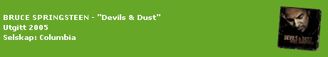 Springsteen har haft som vana att släppa ett ”eftertänksamt och nedsstrippat” album i varje fall en gång i tioåret. Nebraska från ’82, The Goast of Tom Joad i ’95 – och nu Devils and Dust 2005. Inget stort kompband, inga försök på anthems– bara Bruce och ett knippe historier. Mer rotmusikaliskt, med stark närvaro av fiol och munspel visar han till tider vem som äldst, speciellt på den Nebrasque Long Time Comin’. The Goast of Tom var fin, men de goda melodierna fick vika för historierna, så är inte fallet med Devils and Dust– detta är en renodlad Springsteen-platta med lång lisvtid.