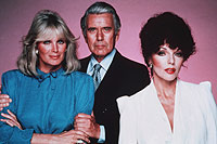 Alexis (Joan Collins), Blake (John Forsythe) og Krystle (Linda Evans) - en uforglemmelig trio. Familielykken ble truet av den onde heksa - igjen og igjen og igjen... (Foto: Camiera Press/SCANPIX) |