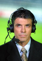 Fotballagent Erik Soler kommenterer for TV3. Her med øretelefoner og mikrofon. (Foto: Gorm Kallestad/SCANPIX) |
