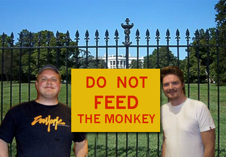 Petremorgen er i Washington D.C for å fortelle deg hva som skjer under det amerikanske valget. I bagasjen har programlederne Steinar og Shaun med seg et tre meter langt banner som de skal henge opp på gjerdet til "Det Hvite Hus". Det var en hard slagord-konkurranse, men til slutt var det "Don't feed the monkey" som vant.
