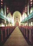 Veggene under galleriene har lyse og mørkere (gråaktige) horisontale striper, noe som bidrar til å gi kirkens indre et preg av intimitet og ro. Taket er uforandret, med den dominerende mørke trearkitekgur i sin opprinnelige fargetone.