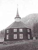 Lønset kyrkje er åttekanta, bygd i tømmer i 1863.