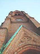 Kirken, en langkirke i tegl, ble innviet den 22. desember 1886, da med 1020 sitteplasser. Bygget er gitt et nøkternt gotisk preg, og danner et utmerket forndmotiv for den korte Jørgen Moes gate. Fondmotiv i motsatt ende er Briskeby brannstasjon.