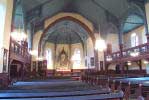 Innvendig får trekk ved den nygotiske arkitekturen kyrkjerommet til å løfte og tøye seg opp mot det høge.