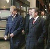 Kjell Inge Røkke og Gerhard Schröder promenerer i Oslo. |