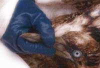 Fugl blir reinsa av spansk hjelpearbeidar. |