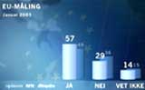 For to år sidan ville berre 27 prosent av dei unge inn i EU, viste ei meiningsmåling. No vil 58 prosent av dei under 30 inn i EU - av dei som har bestemt seg. 17 prosent er enno usikre.