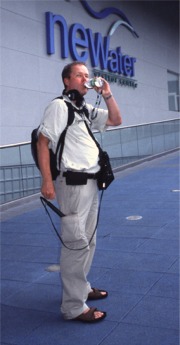 Ben tre er avsalting av havvann. Det første anlegget skal stå ferdig i 2005 og det kommer trolig flere. Det fjerde benet er gjenvinningsanlegget for brukt vann. Singarpores NEWater-prosjekt. -For husk, sier vår Disney-aktige widescreenguide. -vi er alle nedstrøms noen andre…