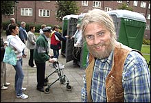 Narvestad setter opp tørrklosett i bakgården (Foto: NRK/Pål Nissen) |