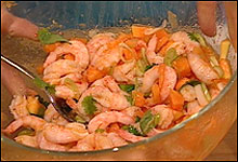 Med reker, papaya, vårløk, koriander og dressing pent dandert i et cocktailglass, har du en imponerende forrett. Kokke-Lise foreslår en biff stroganoff til hovedrett, og gir deg oppskriftene her!