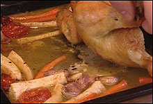 I dag var det nettopp italiensk mat som sto på menyen. Nærmere bestemt helstekt landkylling spekket med parmaskinke og salvie, servert med rotgrønnsaker og gnocchi med parmesan.