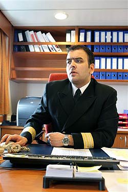 Ronny i hotellsjefstolen på MS «Midnatsol». Foto: NRK |