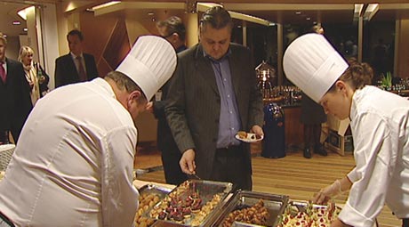 Nok å gjøre når nyfikne Oslofolk skal bespises med kanapéer. Foto: NRK |