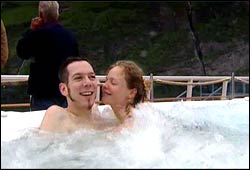 Nygift, boblebad og vakker norsk natur; hva mer kan man ønske seg? Foto: NRK |