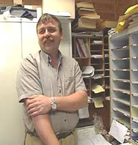 - Jeg har verdens triveligste jobb, bedyrer Svenning mens han blar seg gjennom aviser, kjærlighetsbrev og massekorsbånd.