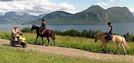 Hestemiljøet på Sekken er stort, og det er vanlig å møte hester når man er på rundtur på øya. |