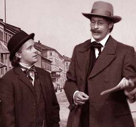 Så reiste Knut Hamsun til Norge for å bli anerkjent også i Norge. Og den anerkjennelsen kom, syntes han sjøl, helt i skyggen for Nansen. For Nansen ble tatt imot av titusener av mennesker i Christianias gater. Så Hamsun rykker ut i Dagbladet med en stor artikkel. Han har to meget klare synspunkter. Det ene er at Norge må slutte å sulte sine store menn, slik at de må reise ut, som han. Og det andre er at Norge må slutte å hylle ubetydeligheter.