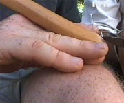 3) Lag en løkke av snøret, som du legger rundt kroken, på fingeren der kroken har gått inn.