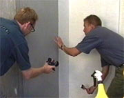 2)Sett karet ned på gulvet, med limsiden rettet mot veggen.