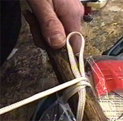 1) Lag en løkke på tauet som du legger på stokken (som skal forsterkes)