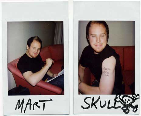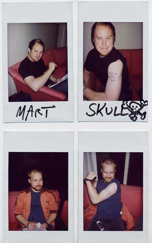 Tatovert bak scenenJaga-gutta og -jenta poserte villig i Puma-jakker. Martin og Ketil lagde sine egne tatoveringer også. Publisert 09.10.2002 20:29.