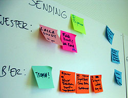 Mannen bak klistrelappene heter Art Fry, og var ansatt i selskapet 3M, som produserer kontormateriell, inntil nylig da han trådte inn i en feit pensjonisttilværelse. Fry fikk ideen etter at han og sjefen hans utvekslet informasjon på små papirlapper som de la løse inn i bøker, og fant ut at det hadde vært litt greit om de hadde sittet fast. Den selvklebende guffa bakpå lappene ble deretter nitidig utviklet av ingeniører i 3Ms laboratorier.