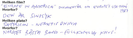 --> Men svensk kom vi ikke unna: Som film i turnébussen velger Magnus seg "Europe in America" - turnédokumentaren som de svenske puddelrockerne spilte inn i 1987. Ikke akkurat "The Dirt" av Mötley Crue, men Melody Club kaller likevel filmen for "sindsyk".