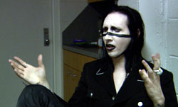 Sjokkrockeren Marilyn Manson fikk skylda for Columbine-tragedien. Michael Moore snakker med ham om det. |