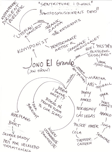 Jono el Grande er blitt kalt "skurkedandy" og driver nyskapende dirigering, men har visst også jobbet i barnehage. Hva skal vi mon snakke med ham om? Publisert 10.02.2003 13:21. Jono el Grande har naturligvis et annet døpenavn - Jon Andreas Håtun. Om ikke lenge er den mustasjeprydede, velkledde mannen med hatt klar med både ny plate og show på Smuget med Zahid Ali og Øyvind Angeltveit. Anne har som vanlig gjort sine notater før samtalen med Jono i Store Studio på onsdag, altså 12. februar kl 22.00 på NRK1.