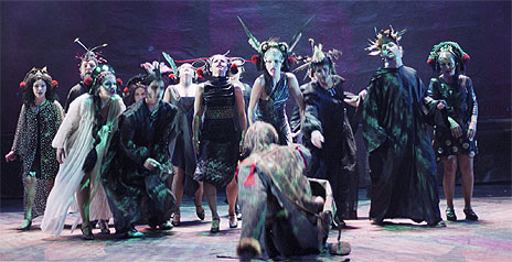 Som Vandreren har Lasse Kolsrud minst like mye trøkk og intensitet som da han var styggen sjøl i "The Black Rider". Hildegun Riise er bedre som dødens fyrstinne enn som lidende, svartkledd kone. Datteren er søt og frekk i Ingrid Jørgensens skikkelse, og leverer kveldens skjønneste duett i samsang med Hallvard Holmen som Vandrerens keitete og engstelige følgesvenn.