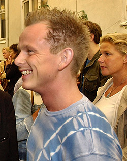 Mads Larsen - ikke på sjekkern, men i samtale med to andre Gyldendal-debutanter. Foto: Arash A. Nejad/Scanpix. |