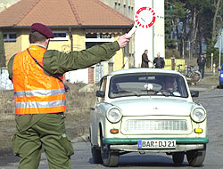 Folkebilen, bedre kjent som "Trabi". Er for DDR det Ladaen var for Sovjetunionen. Vidunderlige, klumpete rustholker. Bilen blir faktisk satt i produksjon igjen om ikke lenge, da som framkomstmiddel i sydligere strøk. Firmaet Sachsenring Automobiltechnik AG meldte i mai i år at den nye Trabien med tiden skal settes ut på afrikanske veier under navnet AfriCar.
