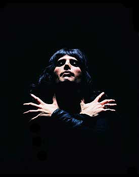 Freddie Mercury i Queen på Mick Rocks bilde som egentlig er rappa fra en filmplakat med Marlene Dietrich. |