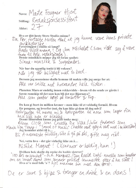 Marte Fougner HjortVår redaksjonsassistent Marte er bittelitt misunnelig på kona til Even 'Magnet' Johansen, og vil spandere drinker på folket så de løsner opp litt og danser i stedet for å være sure. Publisert 06.02.2004 09:09.