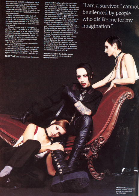 Det er temmelig få norske forfattere som kan skryte av å ha ligget i fanget til Marilyn Manson. Ingen bortsett fra Edy Poppy faktisk. (Faksimile: Kerrang) |