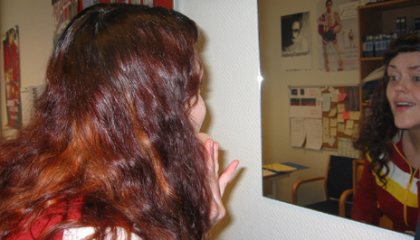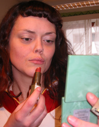 Hva gjør man ikke for å få seg en mann...eh, vi mener; for å skaffe en film? Marte fresher seg. |