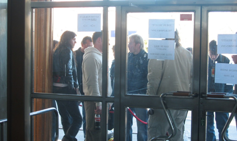 Etter en times tid er foajeen i studio stappfull, og køen begynner å snirkle seg utenfor lokalet. |