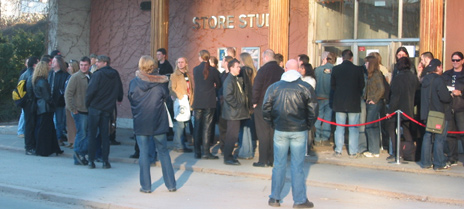 Dørene til Store Studios innspilling åpner klokken 19.30 mandag kveld. Allerede før klokken 17 hadde det dannet seg en kø av innbitte Kiss-fans som ville sikre seg de aller beste plassen med utsyn til bassist-helten Gene Simmons.