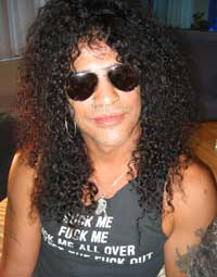 Vår gamle gitarhelt, Slash fra Guns 'N Roses, har takkgodegud ikke klippet håret eller fått seg ærlig arbeid. Puh! (Foto: NRK) |