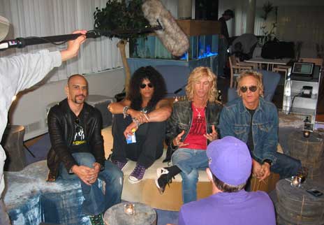 Velvet Revolver ble intervjuet av Per før konserten på Øya-festivalen. Vokalist Scott Weiland var ikke til stede. Det skyldtes ikke heroinoverdose, men en inngrodd tånegl. Var det noen som sa rock'n'roll..? (Foto: NRK) |