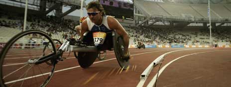 Paralympics byr på uante juksemuligheter, tror vi. Her ser vi Frances Fairbank på 400-meter'n. Vi sier ikke at han har juksa altså. (Foto: Scanpix) |