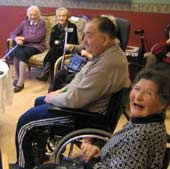 Se så glade disse godt voksne menneskene er! Lite aner de at snart skal skytes av en gjeng tyske turister med fritidsproblemer. Da blir vi kvitt språkproblemet knyttet til de aldersmessig utfordrete også. |