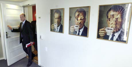 Nixon-bildene til Kjartan Slettemark kunne støte utenlandske ministre, så Jagland fjernet dem. Han bør ikke stoppe der, synes vi - det er plenti annen støtende kunst han kan sensurere! (Foto: Scanpix) |