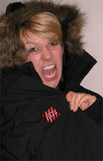 U2-jakka du kan vinne, er noe av det fineste vi har sett på lenge, og researcher Sigrid Bonde Tusvik demonstrerer her hvor lite lyst vi har til å gi den fra oss. (Foto: NRK) |