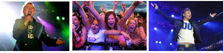 Hele dagen gikk lydprøvene på løpende bånd, også her med Kurt som det ultimate høydepunkt idet solen tittet fram fra regntunge skyer. Sjarmtrollet Gareth Gates smeltet et par tusen pikehjerter som hadde ventet i timesvis foran gjerdet. Da portene endelig åpnet, sloss de samme jentene om plassene nærmest scenekanten. Vaktene forsøkte fortvilet å holde orden i rekkene, men fjortisene vant stafetten over plassen. Mange angret nok likevel plasseringen da de ble båret ut halvveis i konserten, det ble i trangeste og varmeste laget for små fjortiskropper. Mange mennesker til tross, 40 000 mennesker beviste i går kveld at man kan feste sammen på Rådhusplassen i Oslo - i hvert fall med Kurt i spissen!