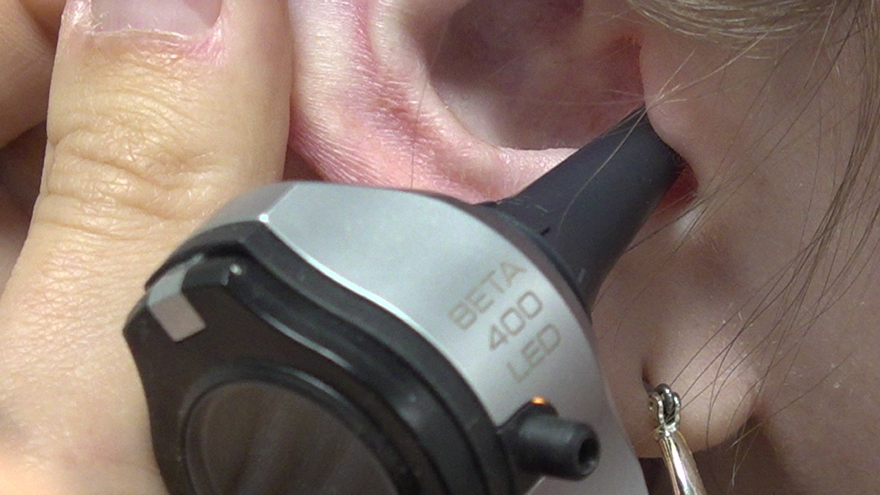 Øreundersøkelse med otoskop på Sørlandsparken legesenter.