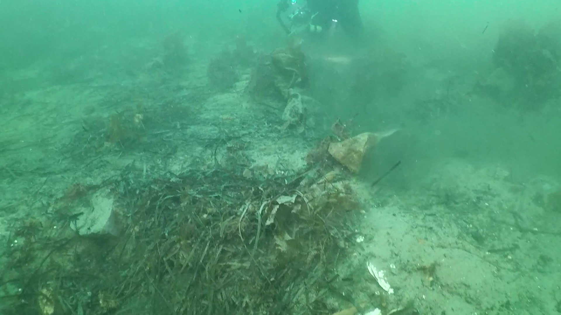 Havbunnen er pepret med flasker, krittpiper, dekketøy og mye annet.