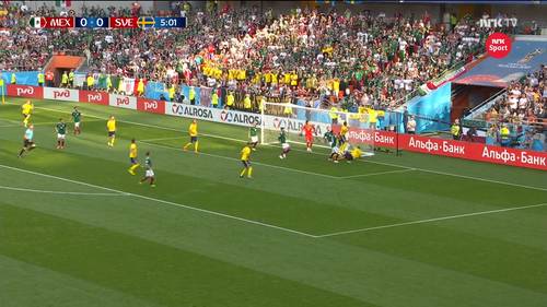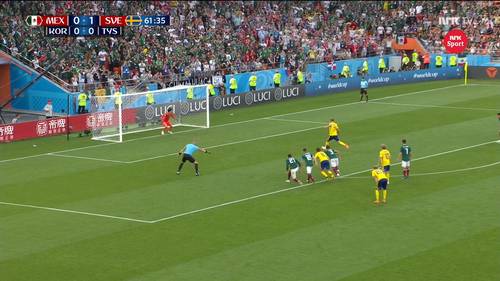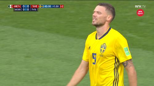 Noen minutter senere var Emil Forsbergs frispark på kanten av sekstenmeteren av den farlige sorten, men også denne gang slapp Mexico med skrekken. Deretter skapte Marcus Berg lagets tredje store sjanse på under 12 minutter.