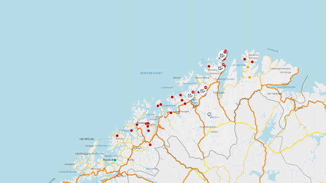 I tillegg er det kolonnekjøring flere steder i Finnmark.