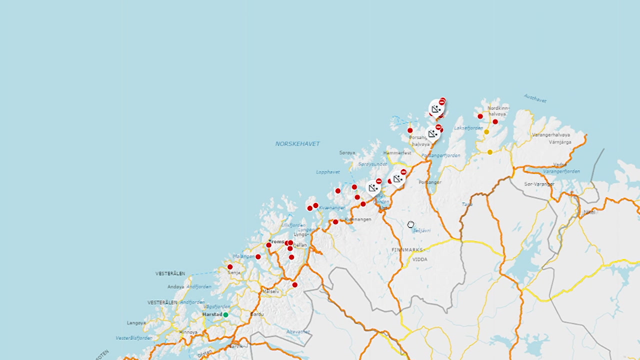 Ikke nok med at 13 veistrekninger i Finnmark er stengt, 7 veistrekninger er fremdeles stengt på grunn av skred og fare for snøskred i Troms. Fredag har det gått flere skred i fylket, blant annet et over en allerede stengt fv. 7942 på Arnøya i Skjervøy kommune og et i Rotsundelvdalen i Nordreisa.